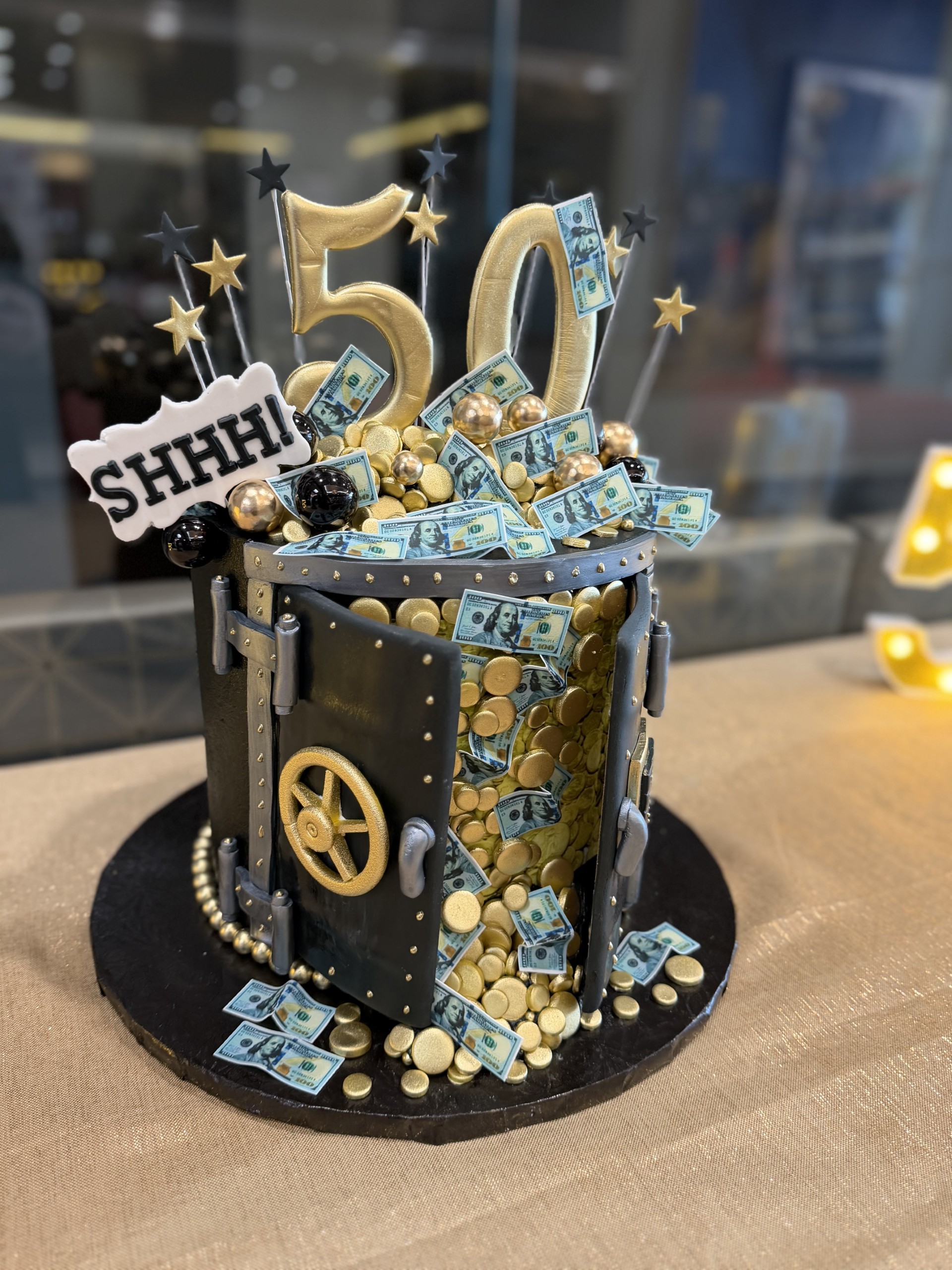 Custom Bank Vault Cake for a 50th Birthday Celebration in Jenks, Oklahoma