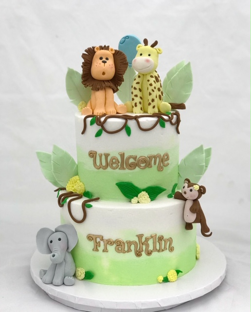 We are always excited when someone orders a jungle themed cake because there are so many decorating possibilities and this