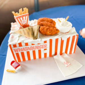 Cake that doesn’t look like cake is my favorite kind of cake! This Whataburger meal cake was actually a Groom’s