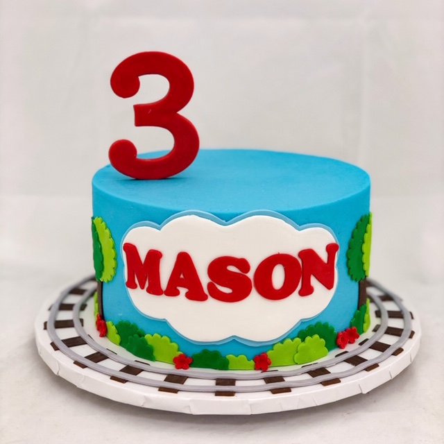 Not all cute cakes have to be multiple tiers of involve lots of piping and 3D accents and this cake for Mr. Mason’s 3rd birthday is the perfect example of