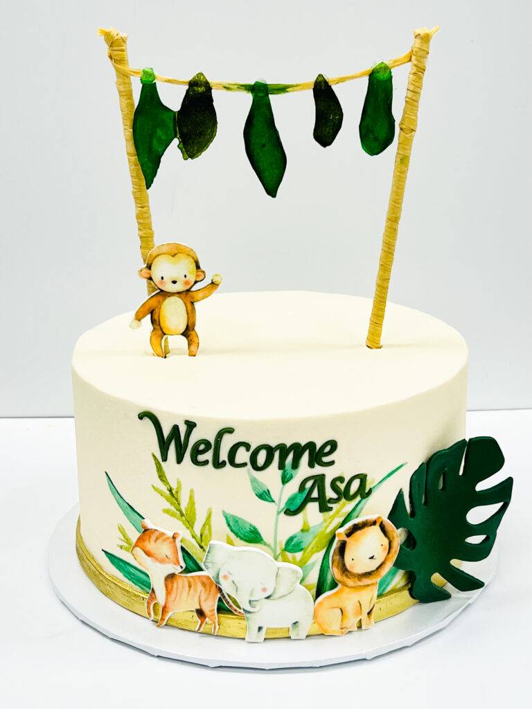 This cake is a great example of using edible images in a creative way that doesn’t look cheesy. Since we printed the animals instead of piping or sculpting them, we