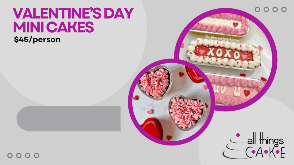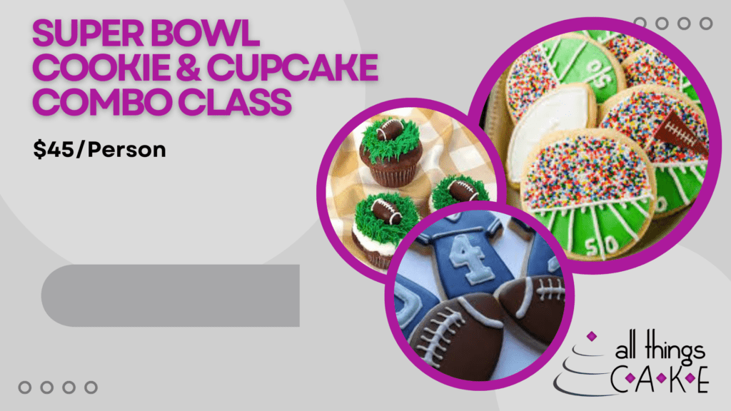 Super duper important fine print: This class is best for those 14+. Younger students may attend class accompanied by a paid adult – BOTH THE CHILD AND ADULT MUST REGISTER. Each class is packed with tips and tricks to help you achieve decorating success at home! All supplies are provided; NO AUDIO/VIDEO RECORDING ALLOWED DURING CLASSES; All Rights Reserved; Edible items created in class are sent home with students. Advanced online registration is required. Classes are nonrefundable and no-shows will not be transferred to another class. Tickets are not transferrable to another date. If you cannot attend a class for any reason, you may send someone in your place. Class size is limited; Only ticket holders may be in the classroom. This means EVERYONE IN THE CLASSROOM MUST HAVE PURCHASED A TICKET.