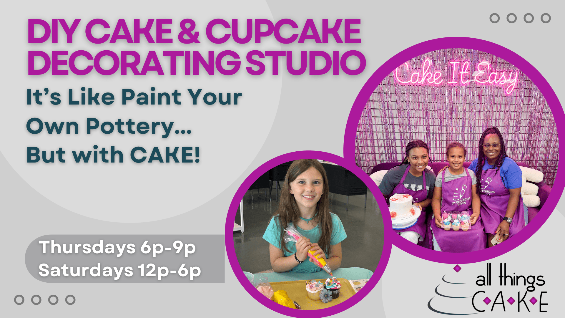 It’s a creative space where anyone can decorate cakes or cupcakes—no experience needed! You pick your project, choose your design, and we provide the tools, buttercream, sprinkles, and décor to bring your vision to life. It’s fun, hands-on, and perfect for all ages.