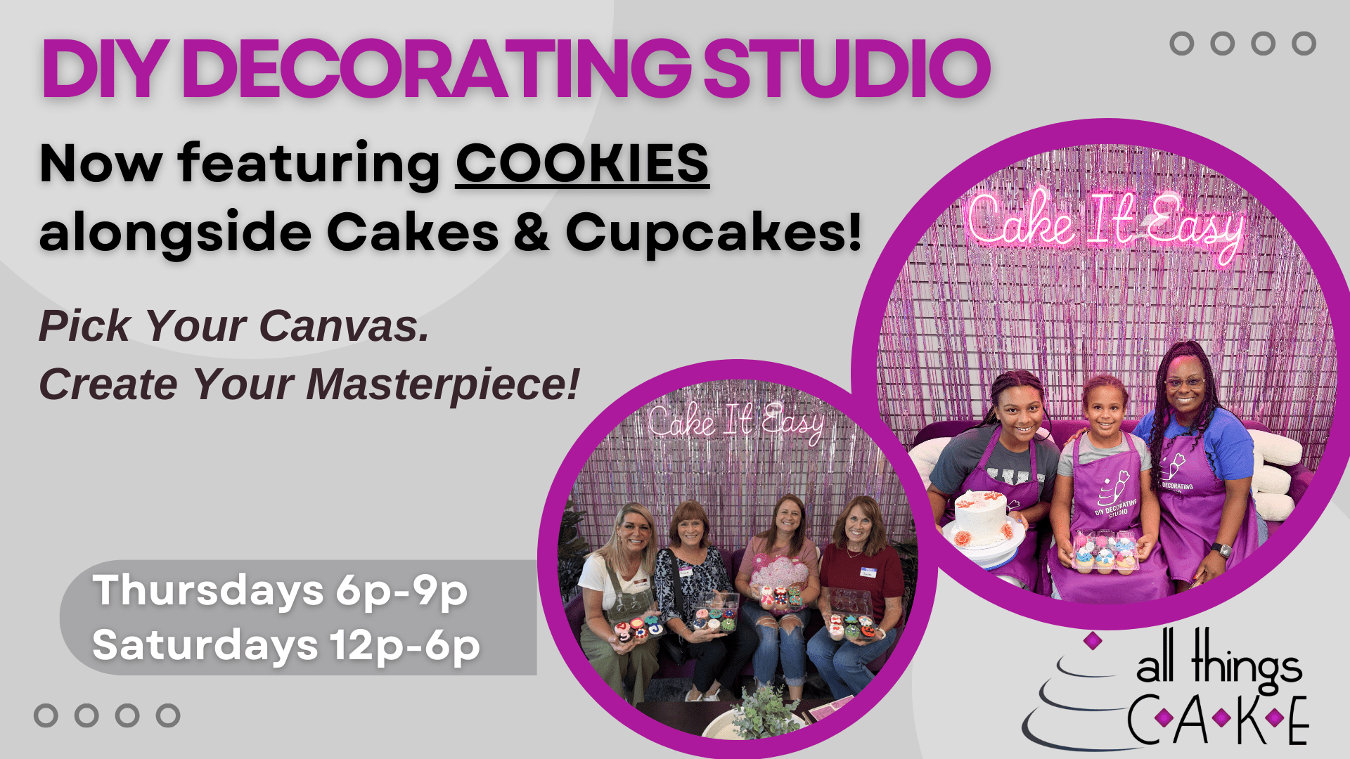 Come decorate with us at All Things Cake’s DIY Decorating Studio! It’s like Paint Your Own Pottery…BUT WITH CAKE!